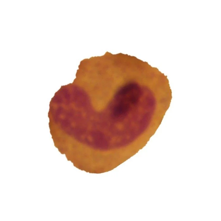 Notice how the nucleus (darker material) is curved rather than lobular.