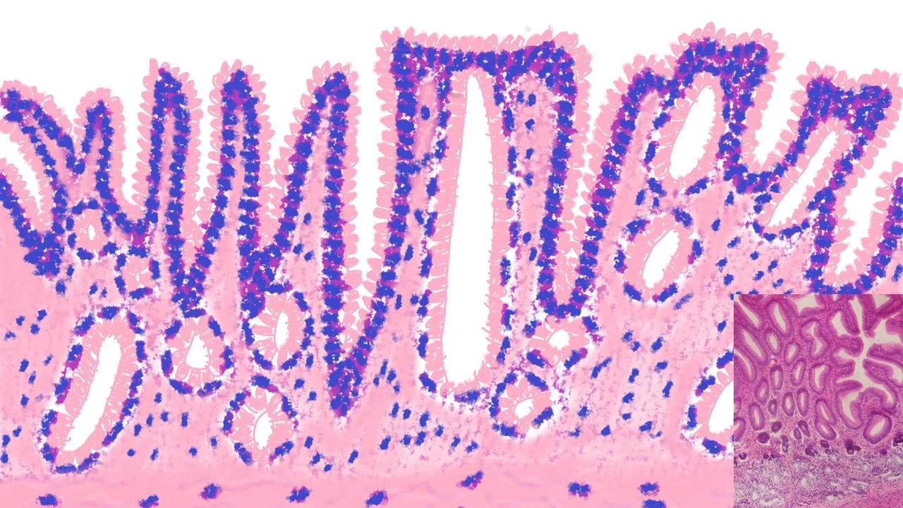 By FastilyClone. Author’s own picture. Digital camera shot of human (pyloric)stomach through a microscope. 13 July 2016. Public Domain.
